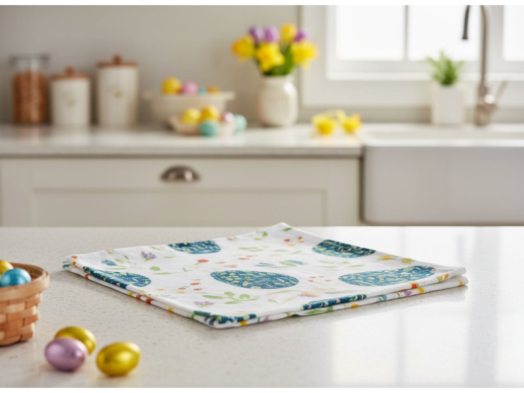 Kuchyňská utěrka ze 100% bavlny s velikonočním motivem je praktickým pomocníkem i krásným doplňkem, který zpříjemní každodenní vaření a pečení během svátků.