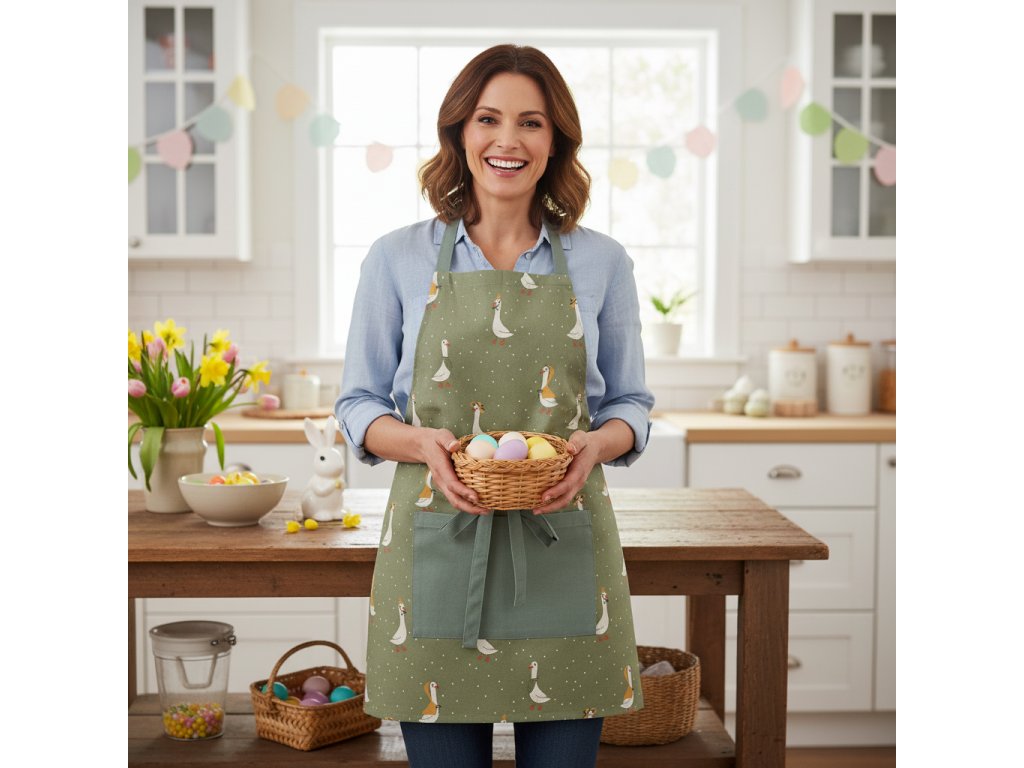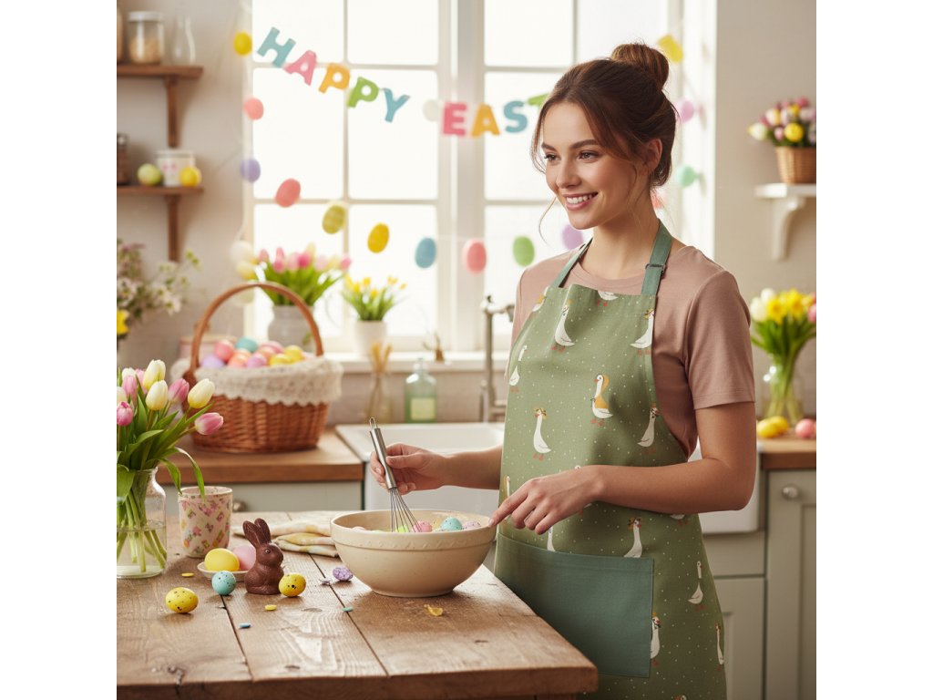 Vneste do své kuchyně jarní náladu a sváteční atmosféru 🌸 Velikonoční bavlněná kuchyňská zástěra je praktickým i stylovým doplňkem, který ochrání vaše oblečení při vaření, pečení i velikonočním tvoření.
