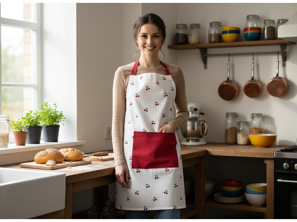 Zástěra krade srdce svým okouzlujícím motivem třešní rozesetých na bílém pozadí, které upoutají pozornost a dodají energii každému kuchyňskému dobrodružství. Představuje nejen ochranu vašeho oblečení, ale také způsob, jak vyjádřit vlastní styl. Ať už jste amatérský kuchař, nebo zkušený šéfkuchař, tato zástěra jistě dodá šmrnc každé kuchyňské činnosti.