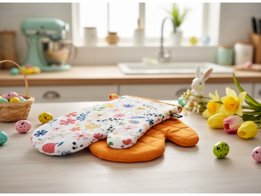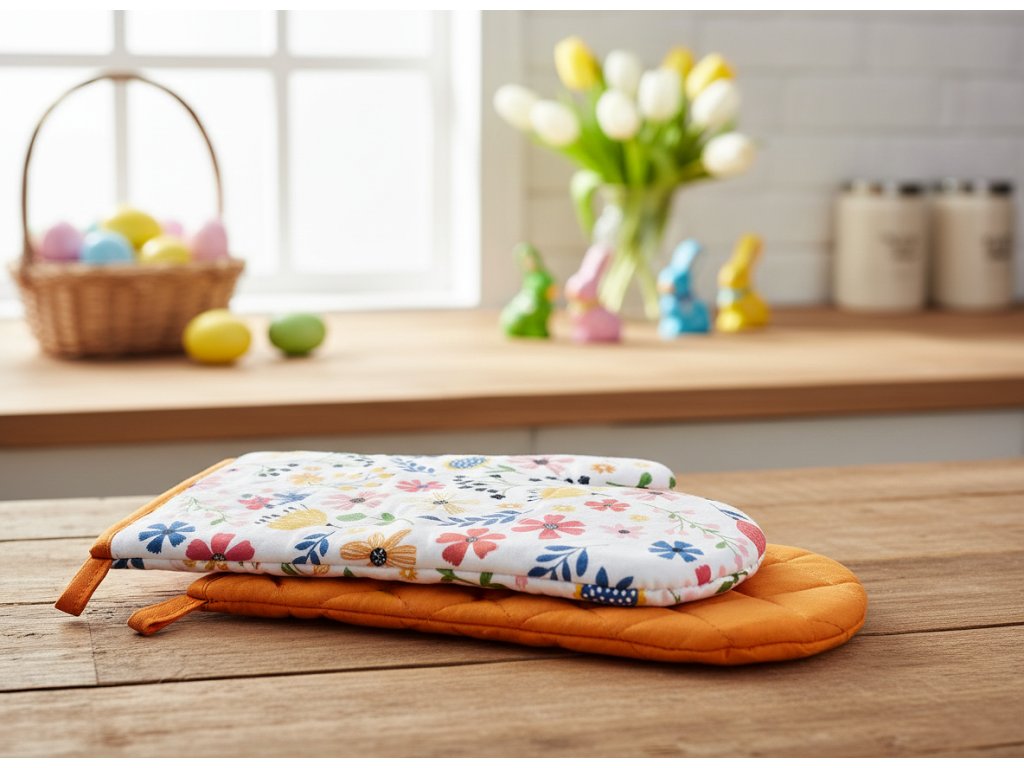 Kuchyňské rukavice jsou vyrobeny z materiálu, který dobře izoluje teplo, například z bavlny. Doporučujeme zvolit design, který se vám líbí a který ladí s ostatními dekoracemi ve vaší kuchyni. Rukavice jsou dodávané s praktickými poutky pro zavěšení.