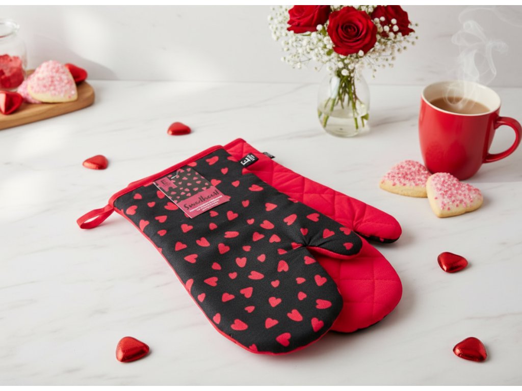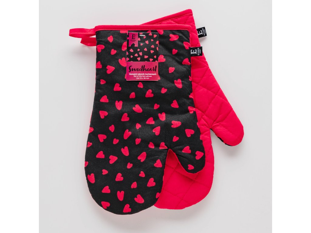 Kuchyňské bavlněné rukavice - chňapky SWEETHEART černá 100% bavlna 19x30 cm Balení 2 kusy - levá a pravá rukavice.