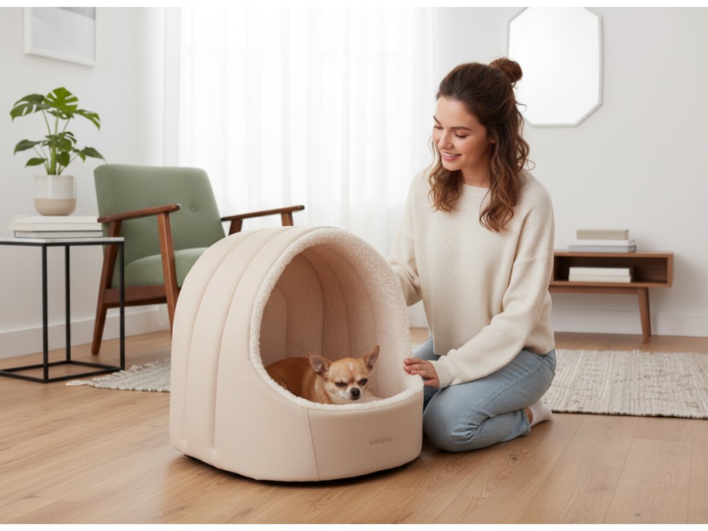 Je vyrobena z velmi odolné polyesterové tkaniny odolné proti poškození, takže psovi bude sloužit po dlouhou dobu. Prvky boudičky lze prát v pračce nebo ručně, takže její čištění a osvěžení není žádný problém.