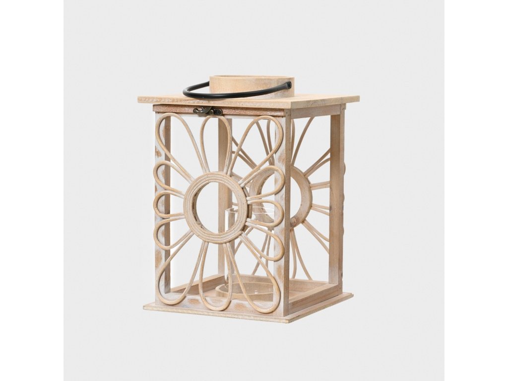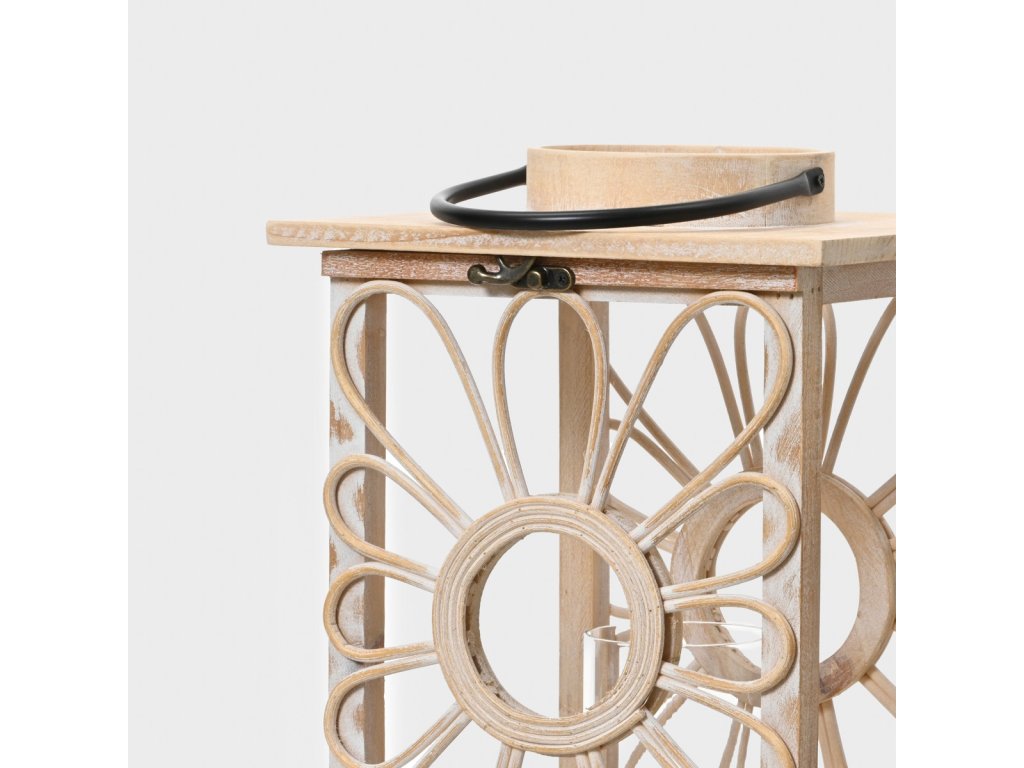 Krásný design z přírodního smrkového dřeva. - Dekorativní prolamované detaily ve tvaru květů. - Ideální jako dekorace na stůl, polici nebo terasu. - Má rukojeť pro snadné přenášení.