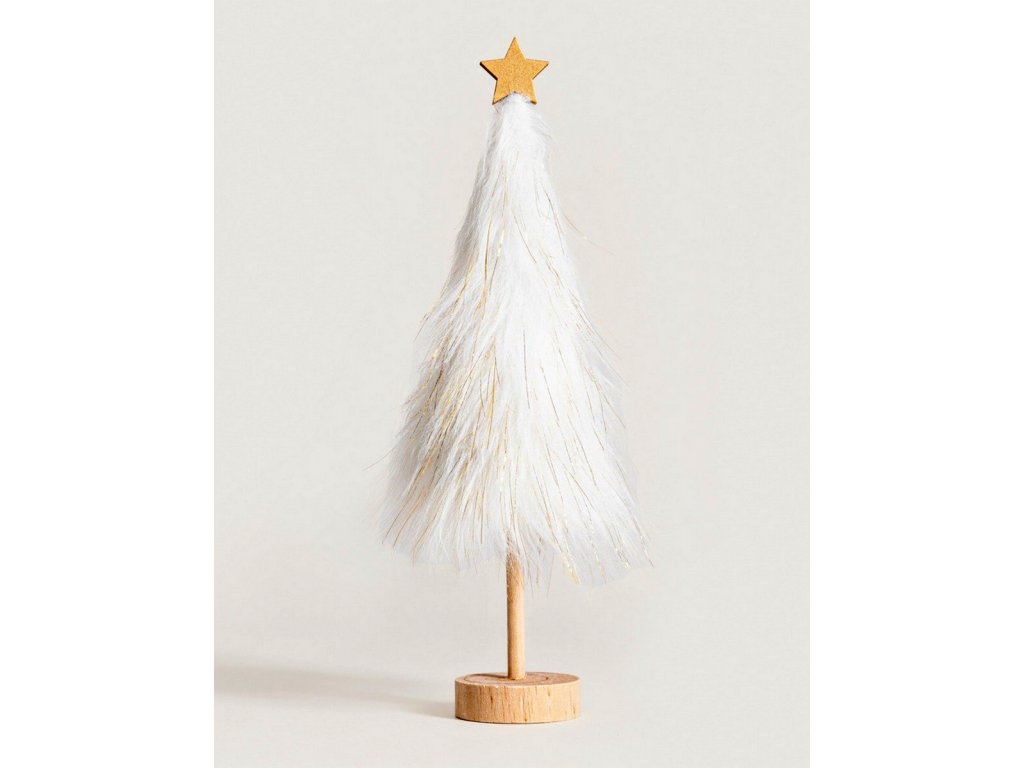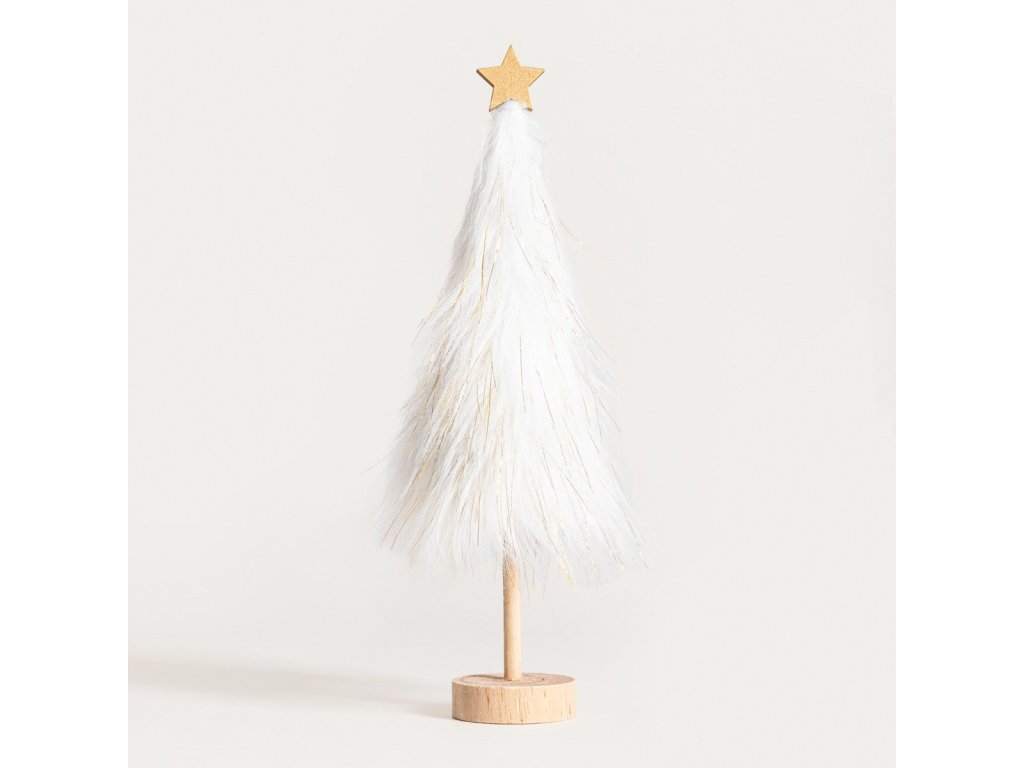 Vánoční stromek s bílou kožešinovou lemovkou 7,5 x 7,5 x 37 cm