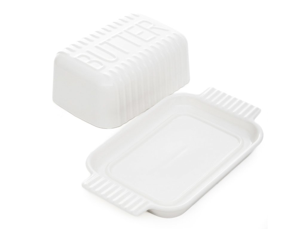 2 části: talíř s uchy + víko - Vysoce kvalitní porcelán - Bílá porcelánová miska na máslo