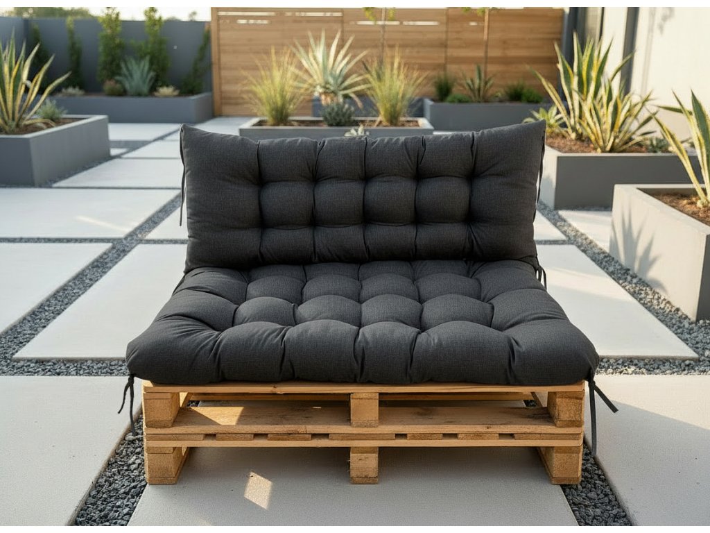Dopřejte si maximální pohodlí při venkovním relaxu. Kvalitní prošívaný set sedáku a opěrky je navržen speciálně pro paletový nábytek a promění každou terasu, pergolu či zahradu v pohodovou chill zónu.