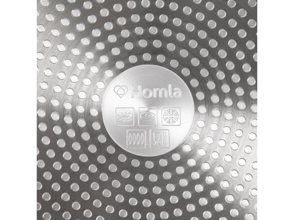 Hliníkové tělo pánve je potaženo nepřilnavým povrchem a feromagnetické dno z nerezové oceli umožňuje použití na indukční varné desce. Tvarovaná rukojeť soft-touch je vyrobena z odolného plastu.
