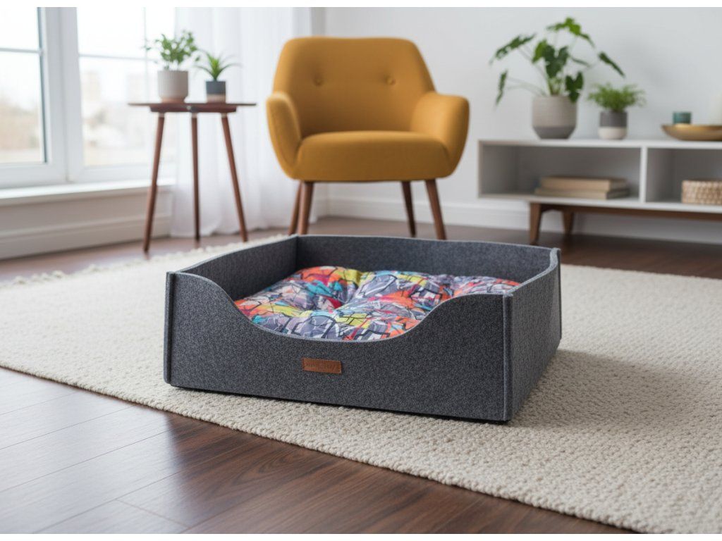 Díky svému jedinečnému a neobyčejnému vzhledu se pelíšek skvěle hodí do každého interiéru. Součástí sady je oboustranný polštář, který dodává pelíšku charakter. Jedna strana je vyrobena z příjemného fleece a druhá ze vzorované polyesterové tkaniny. Lze jej prát v pračce nebo ručně, takže čištění a osvěžení pelíšku není žádný problém.