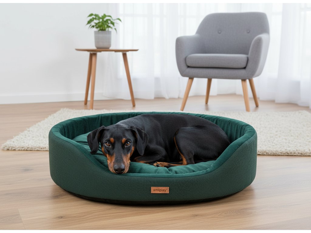 Pelíšek pro psa oválný SIDNEY zelená velikost S, M, L, XL, XXL