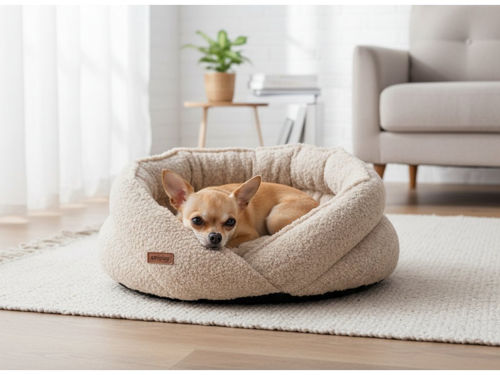 Bouclé tkanina v elegantním krémovém odstínu dodává pelíšku velmi moderní a stylový vzhled – bude jedinečnou ozdobou každého interiéru a zároveň potěší svou měkkostí a útulností. Psi se instinktivně tulí k tomuto materiálu a pelíšek považují za bezpečné útočiště.