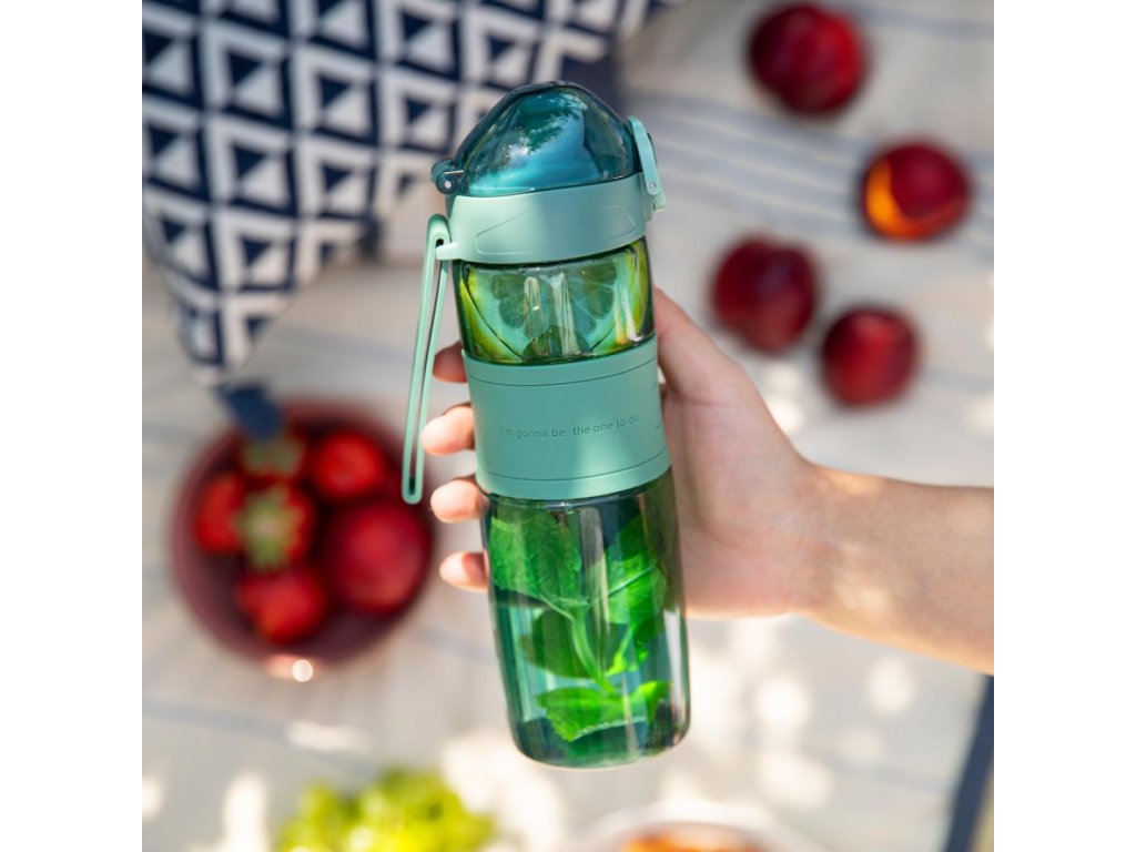 Plastová láhev na vodu THEO je stylovou volbou, kterou si můžete vzít na trénink, do práce, školy nebo kanceláře. Obsah láhve je 600 ml.