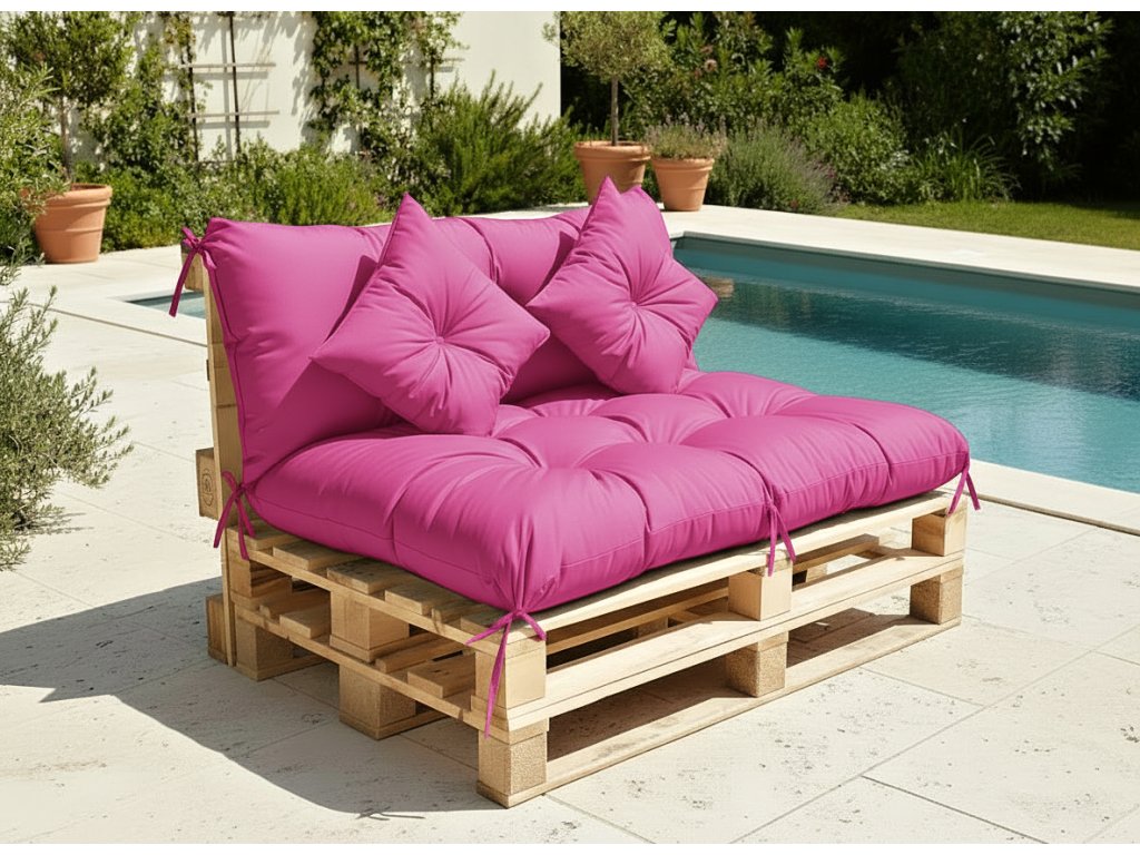 Polstr CARLOS color 36 tmavě růžová, sedák 120x80 cm, opěrka 120x40 cm, paletové prošívané sezení Mybesthome Dárek : 2x polštář 30x30 cm