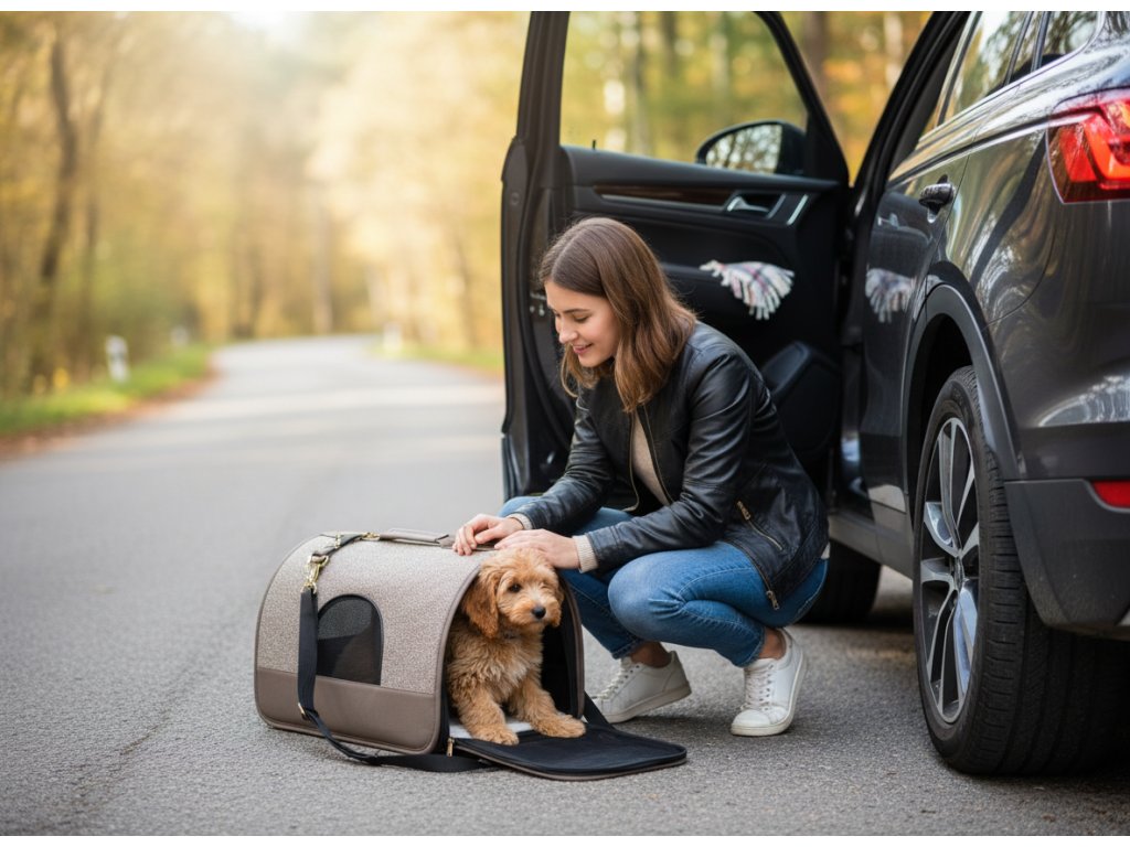 Přenosná cestovní taška pro psy do auta MILLY béžová velikost M, L