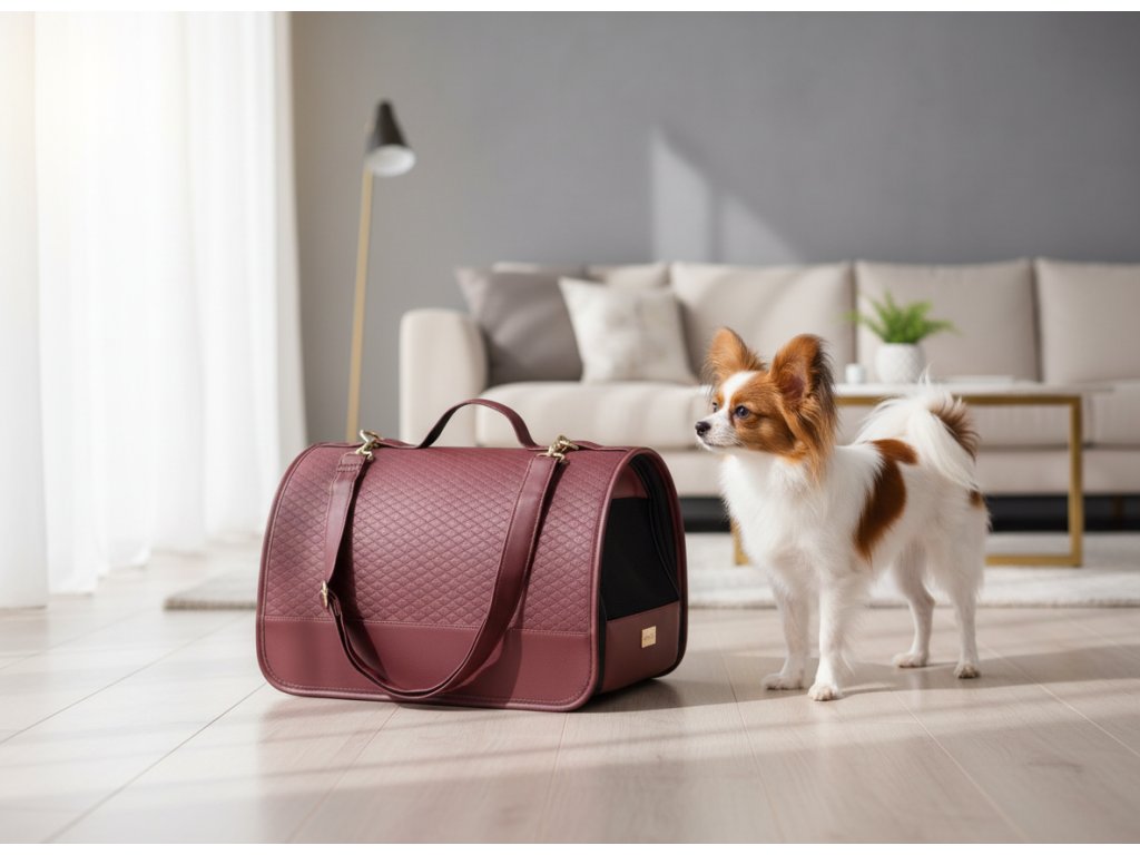 Přenosná cestovní taška pro psy do auta PARIS vínová velikost M, L