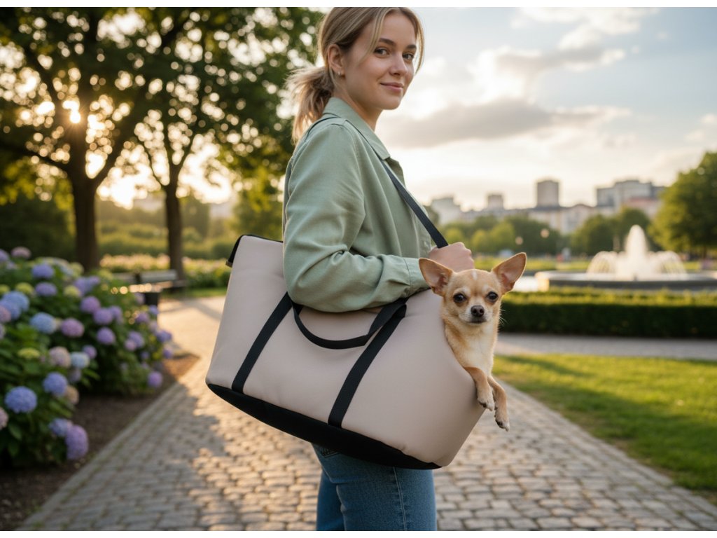 Tvar a materiály, ze kterých je taška vyrobena, z ní činí nepostradatelnou součást každé cesty. Díky otvoru, kterým může pes vystrčit hlavu a pozorovat okolí, je stres spojený s přepravou výrazně menší, což má příznivý vliv na budování správných asociací.