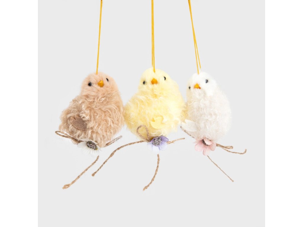 Sada přívěsků DOOLEY v podobě tří kuřátek je dokonalým způsobem, jak vnést do vašeho domova veselou atmosféru. Díky kompaktním rozměrům jsou závěsy ideální pro různá aranžmá.
