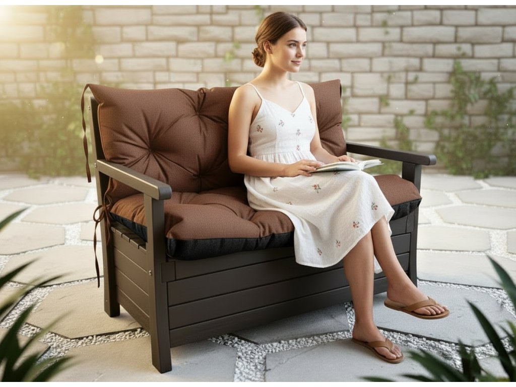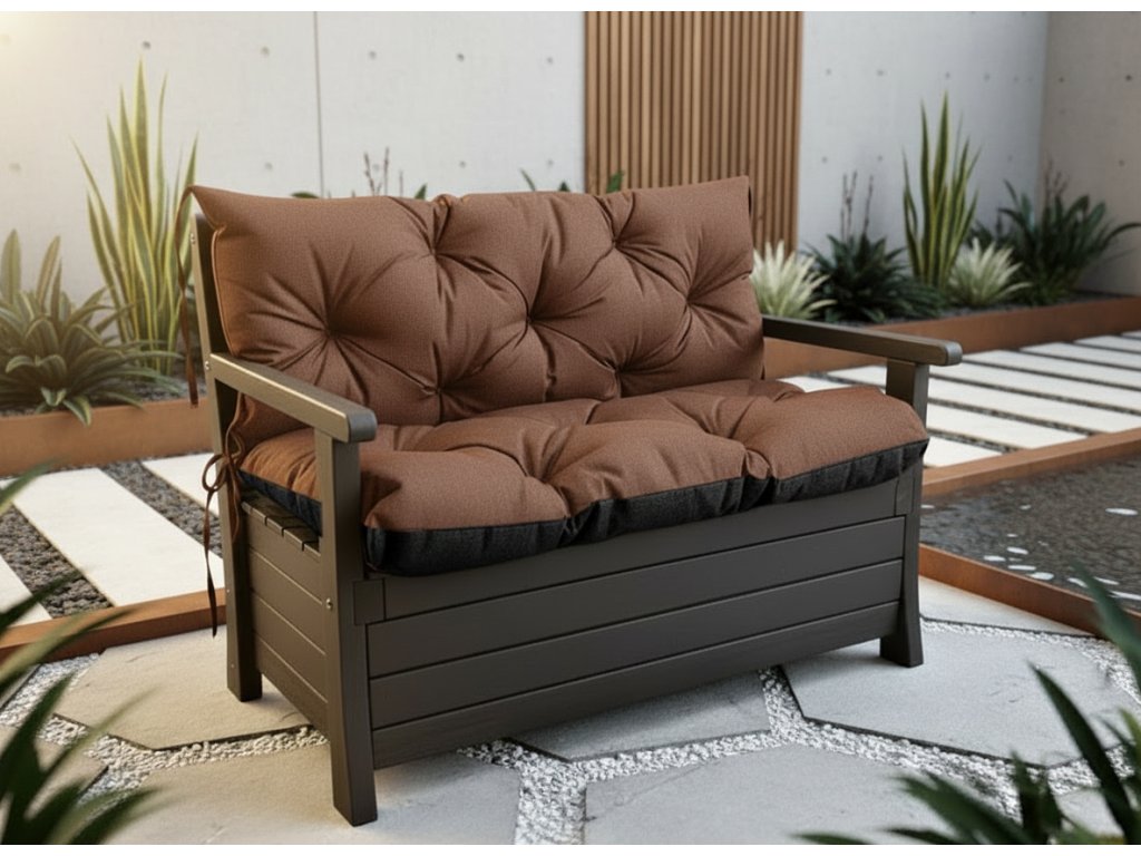 Prošívané sezení ELIAS 550 color 22 HNĚDÁ různé rozměry, polstr na zahradní lavici - sedák s opěrkou, Mybesthome
