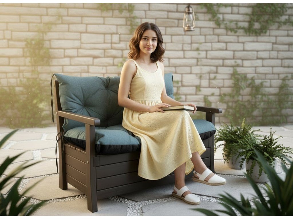 Prošívané sezení ELIAS, polstr na zahradní lavici - sedák s opěrkou
