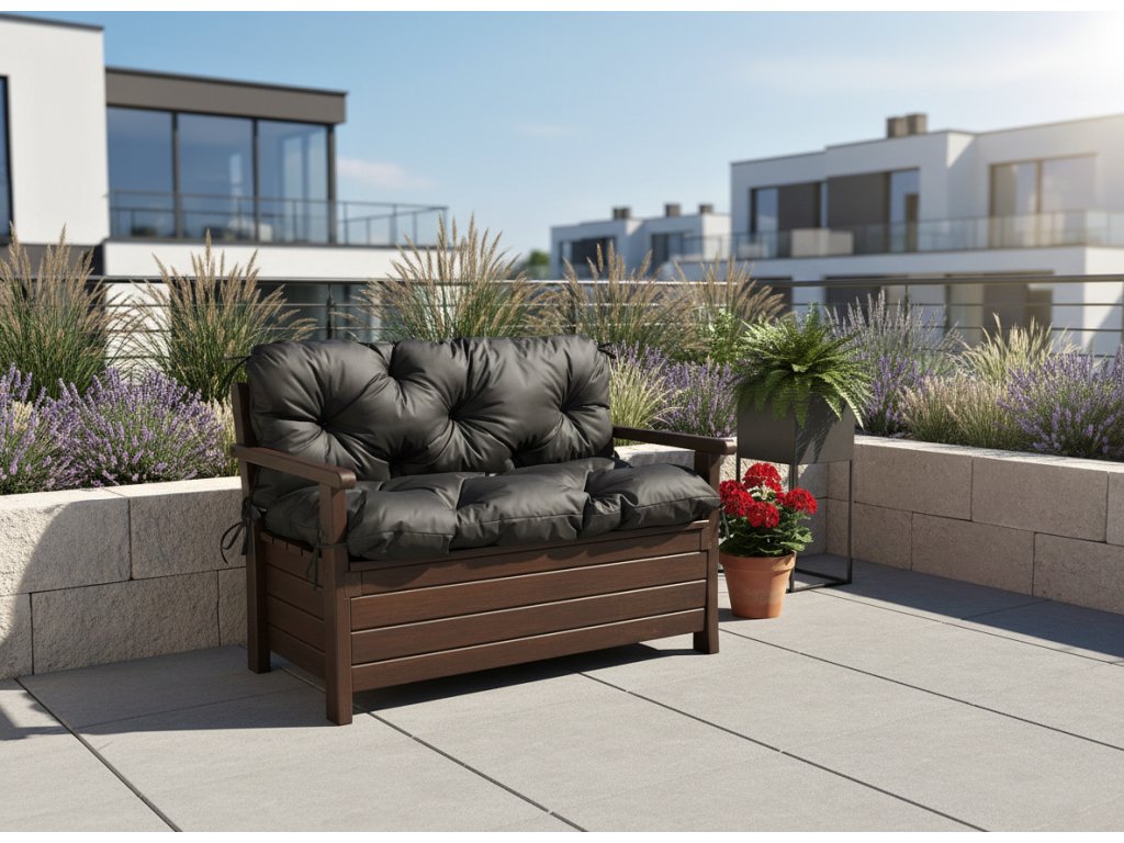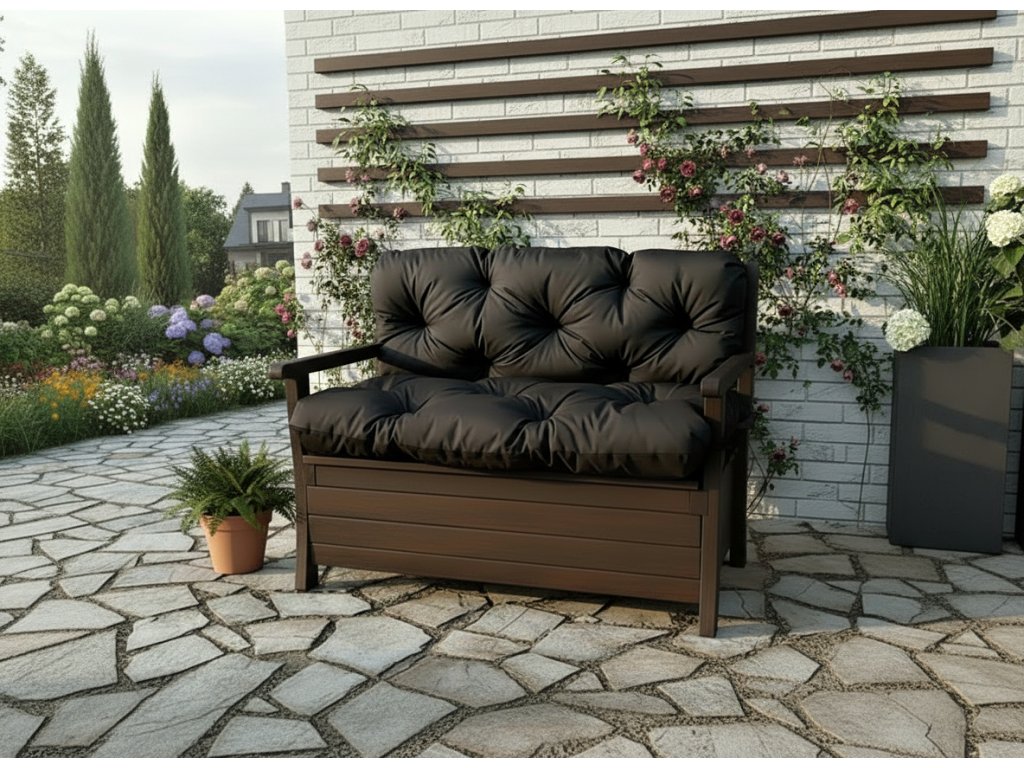 Kvalitní prošívané sezení na zahradní lavici - sedák s opěrkou. Sezení je vyrobeno vcelku v trendových barvách z kvalitní látky, která se vyznačuje vysokou pevností, odolností proti oděru a mechanickému poškození. Vrchní potah je vyrobený z vysoce nepromokavého materiálu, ze spodní strany je použita netkaná textilie. Výplň je z drcených polyesterových vláken o tloušťce 8-10 cm. Sezení je prošívané s praktickými šňůrkami pro připevnění. Lavicové sezení je v nabídce v různých rozměrech.