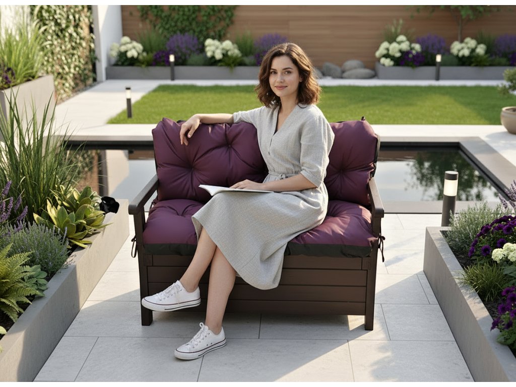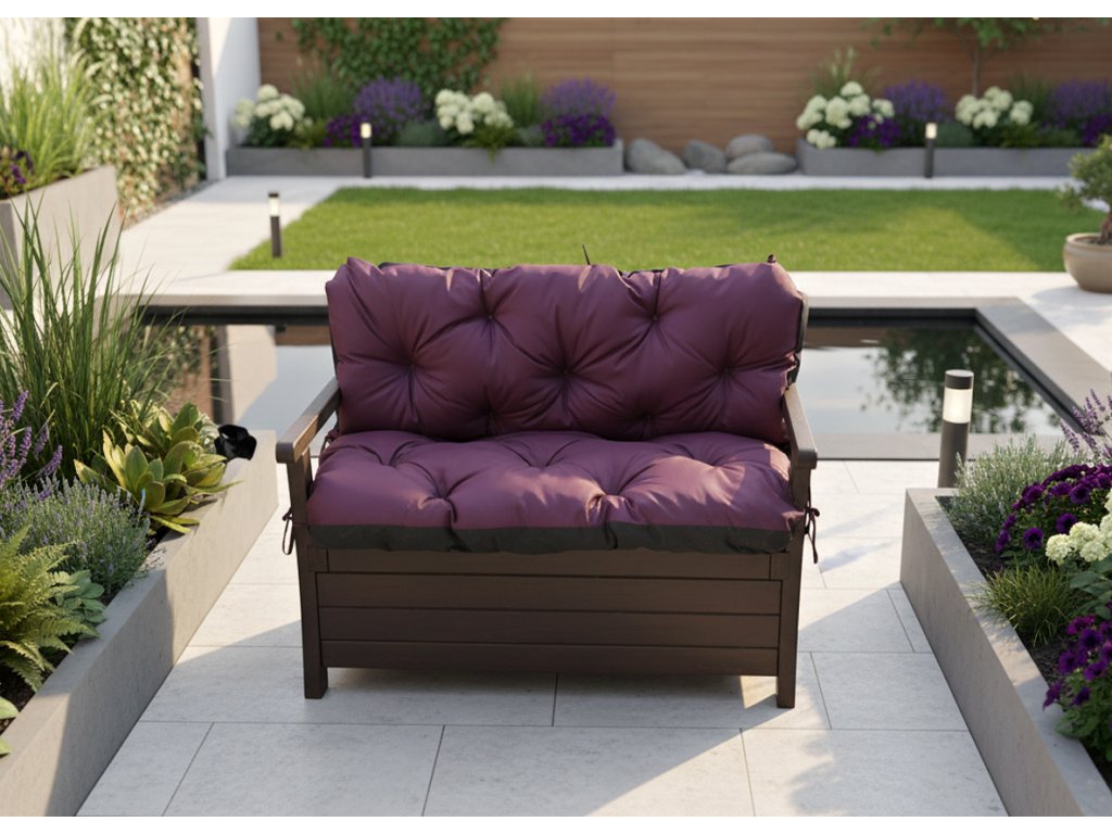 Prošívané sezení JONAS color 15 ŠVESTKOVÁ různé rozměry, polstr na zahradní lavici - sedák s opěrkou, Mybesthome