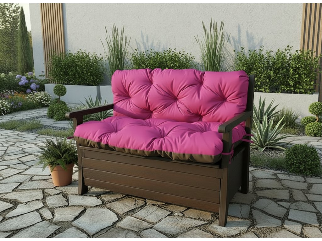 Prošívané sezení JONAS color 36 RŮŽOVÁ různé rozměry, polstr na zahradní lavici - sedák s opěrkou, Mybesthome