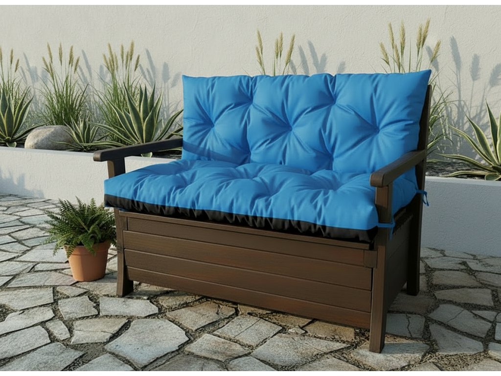 Prošívané sezení JONAS color 39 MODRÁ různé rozměry, polstr na zahradní lavici - sedák s opěrkou, Mybesthome