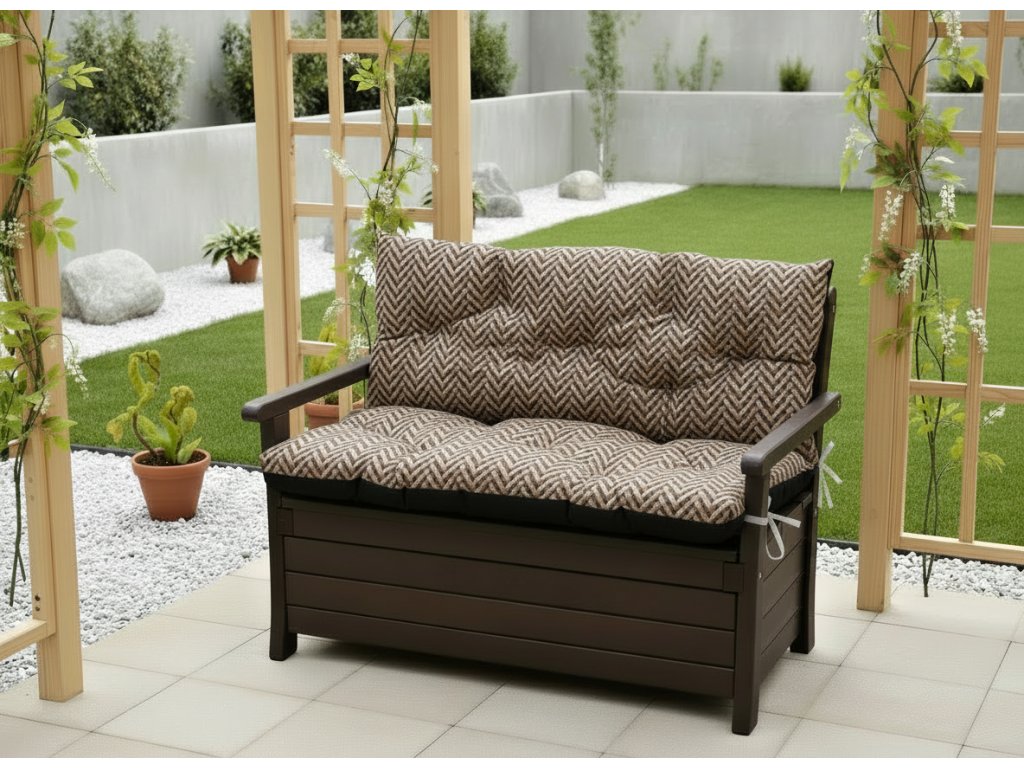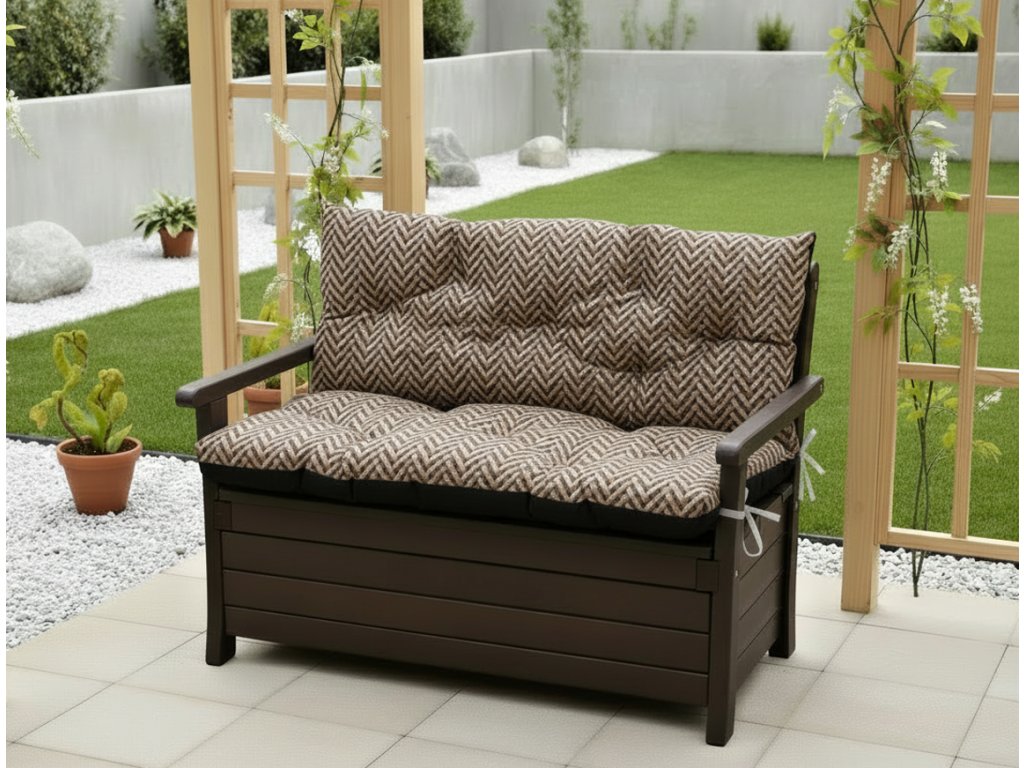 Prošívané sezení MARKUS - vzor 140, vzorovaný polstr na zahradní lavici - sedák s opěrkou, různé rozměry, Mybesthome