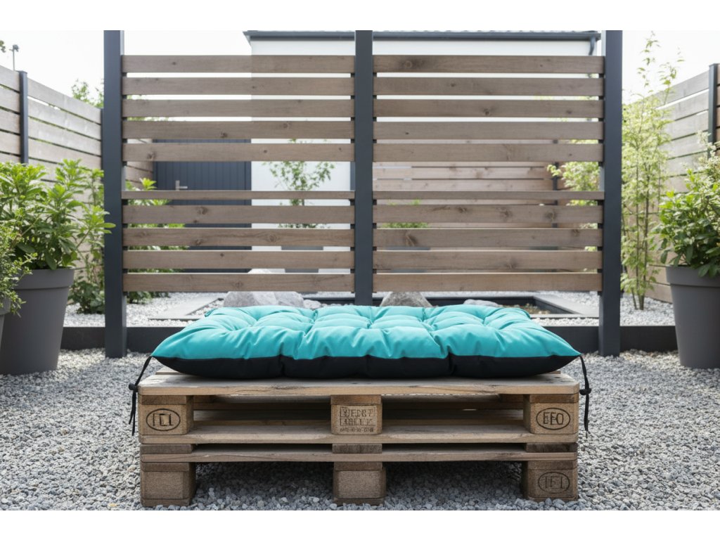 Sedák je vhodný na standardní europaletu o rozměru 120×80 cm, takže perfektně doplní zahradní lounge, balkonové posezení nebo domácí paletovou sedačku.
