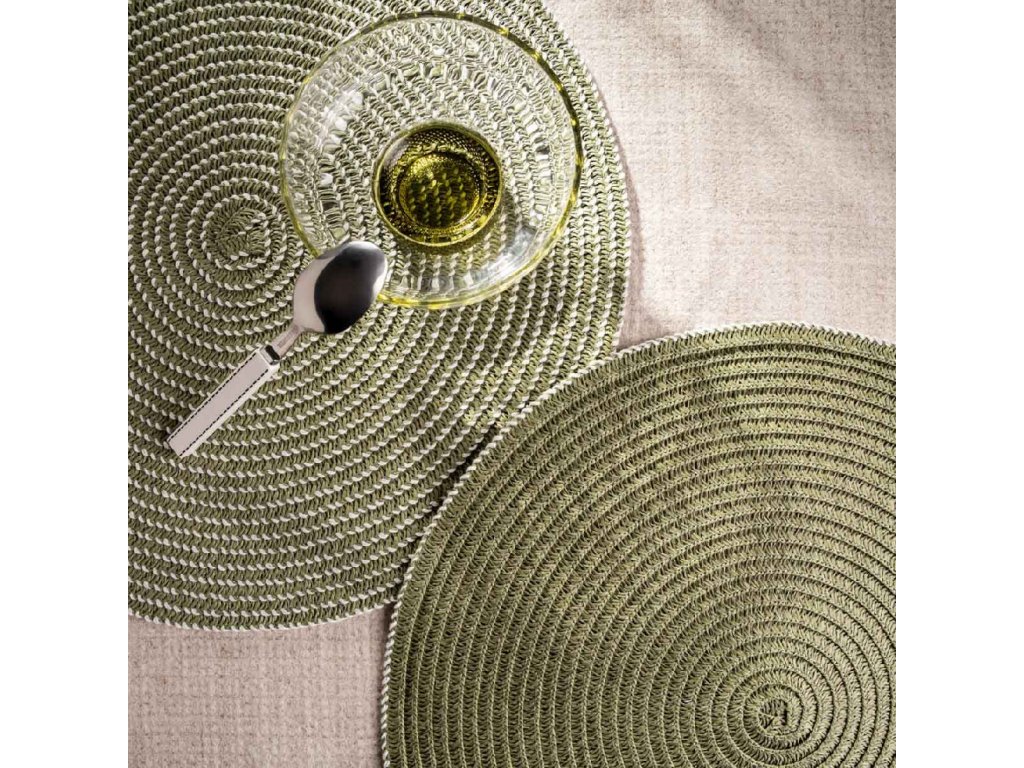 Tato sada dvou zelených prostírek LANDO je praktickým a stylovým doplňkem každé jídelny. Díky kulatému tvaru a průměru 38 cm se na prostírky perfektně vejdou talíře, příbory a sklenice a zároveň chrání desku stolu před nečistotami a škrábanci.