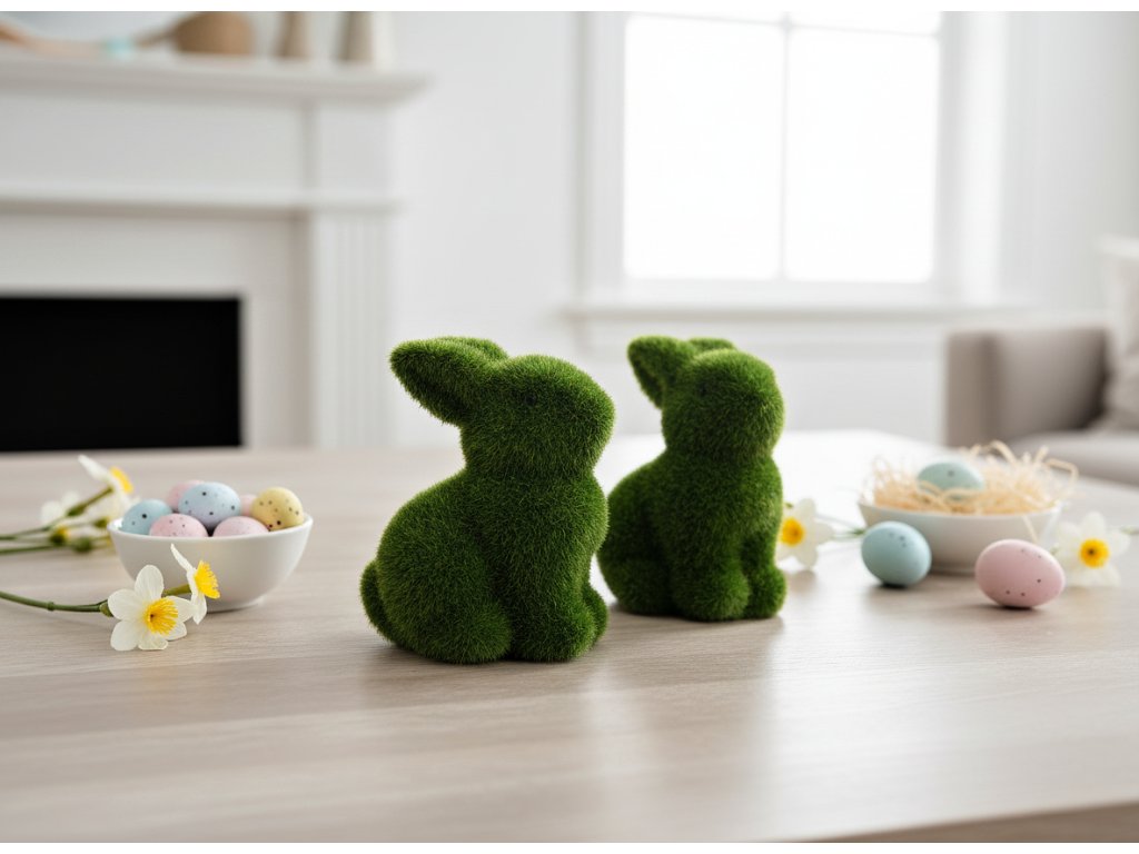 Dekorace malého formátu mají často největší vliv na vnímání prostoru. Sada figurek ve tvaru zelených zajíců vnáší do interiéru svěžest a klidný jarní akcent. Díky své jednoduché siluetě a jednotnému zbarvení figurky nedominují aranžmá, ale přirozeně jej doplňují. Figurky jsou skvělým nápadem pro sezónní dekorativní akcent nebo prvek tematického stylingu interiéru, který vnáší do každé místnosti nádech radosti a lehkosti.