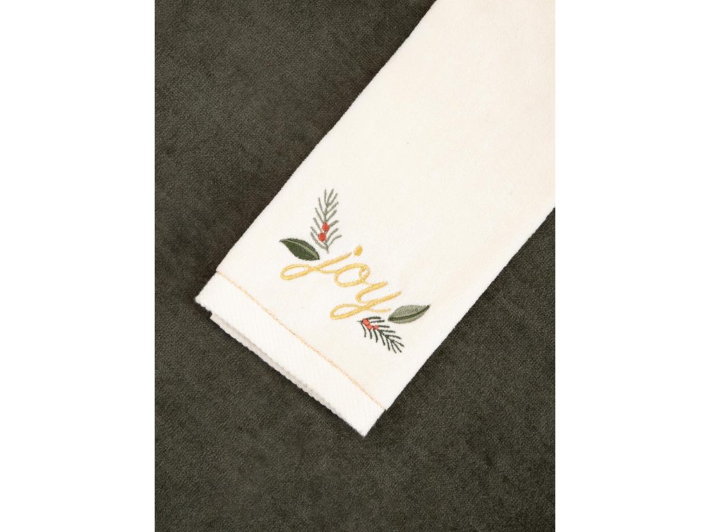 Tato sada bavlněných ručníků má světlou barvu a dekorativní vánoční aplikace. Absorpční tkanina bude ideální pro sušení rukou. Hodí se vám při vánočních přípravách. Dekorativní motiv s nápisem a listy dodá kouzlo každému vánočnímu okamžiku.