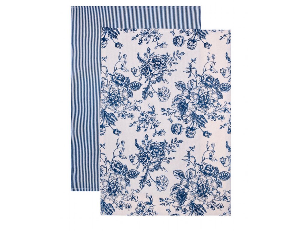 Sada kuchyňských utěrek | NELE | modrá v květinách | 2*45x65 cm | 703843 Cena za 2 kusy v balení