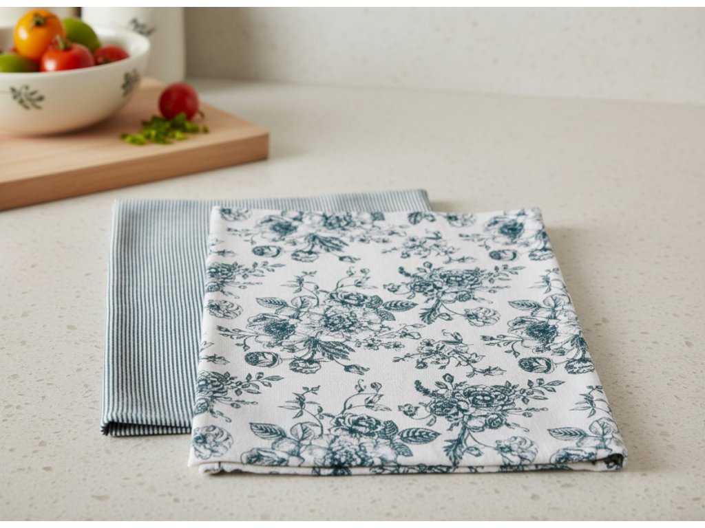 Vysoce kvalitní materiál pro vynikající savost a trvanlivost - Rozměry 45 × 65 cm, ideální pro každodenní práci v kuchyni - Sada kuchyňských utěrek s květinami 2*45 × 65 cm