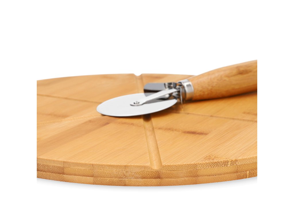 Naservírujte na prkénko svou oblíbenou pizzu a... buon appetito! Sada obsahuje prkénko na pizzu o průměru 32 cm a nůž na pizzu. Nůž vám pohodlně padne do ruky a jedním pohybem nakrájíte svou oblíbenou italskou specialitu. Kulaté bambusové prkénko je vhodné pro snadné krájení pizzy a její servírování přímo na stůl. Výrobek má malé mezery, které pomáhají rozdělit těsto na šest stejných částí. Ekologický styl a design sady je odhalením moderních trendů, které se mohou ujmout i ve vaší domácnosti.