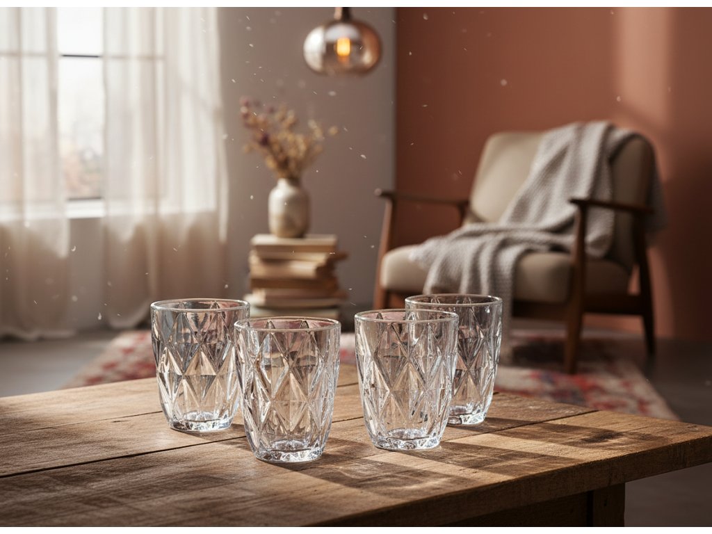 4 sklenice v balení - Elegantní sklenice s reliéfním vzorem - Sada průhledných sklenic LUNO, 4 ks.