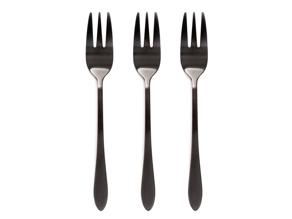 Sada 3 vidliček na dorty v černé barvě. Vidličky STILO jsou příbory, které se vám jistě budou hodit na večírcích i každý den, když budete mít chuť na kousek lahodného pečiva. Stylový tvar a černá barva jim dodávají moderní nádech a eleganci, takže se skvěle hodí ke každému nádobí.
