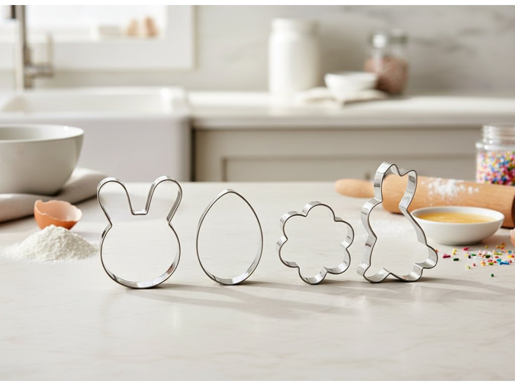 Slavnostní nálada často začíná v kuchyni, ještě než se pečivo vloží do trouby. Se sadou vykrajovátek můžete svým pečivům snadno dodat velikonoční nádech. Motivy inspirované velikonočními symboly dodávají sušenkám a dekoracím estetický, rafinovaný tvar. Jedná se o praktické příslušenství, které vám pomůže udržet pořádek v kuchyni a podnítí vás k společnému pečení.