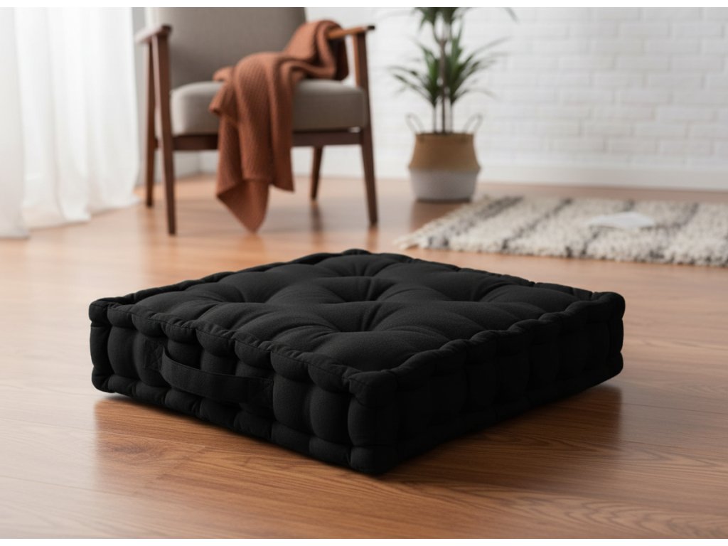 Podlahový polštář je ideální a praktický bytový doplněk, který využijete jako další sezení pro hosty, nebo jako sedací polštář pro letní stolování na zahradě nebo terase. Vyrábí se z různých materiálů, jako je bavlna nebo z příměsí juty v trendových barvách a vzorech. Výplň je z recyklovatelné bavlny. Výhodou je, že má na boku praktickou rukojeť na přenášení. Podlahové polštáře jsou vyráběny v různých tvarech, barvách, designech a velikostech.