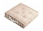 Podlahový polštář je ideální a praktický interiérový doplněk, který využijete jako další sezení pro hosty, nebo jako sedací polštář pro letní stolování na zahradě nebo terase. Je vyrobený ze 100% bavlny nebo s příměsí juty v trendových barvách a vzorech. Výplň je z recyklovatelné bavlny. Výhodou je, že má na boku praktickou rukojeť na přenášení. Podlahové polštáře jsou vyrobeny ve tvaru čtverce s kvalitním prošitím.