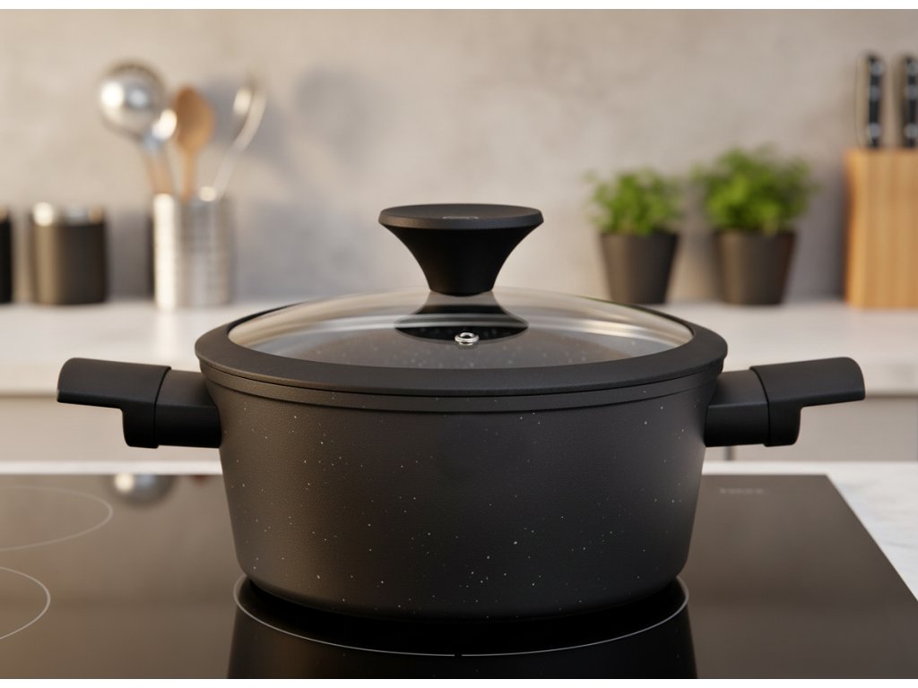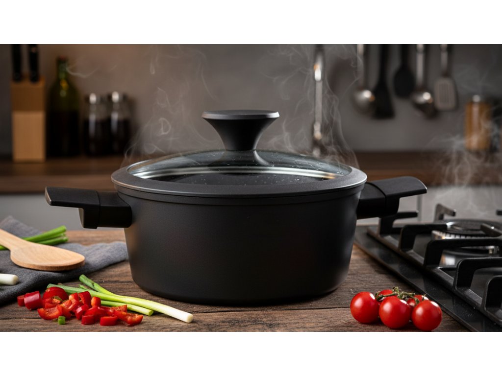 Stylové a funkční kuchyňské vybavení - Odolné materiály a snadné čištění - Všestranný pomocník - Objem: 2,4 l - Praktický hrnec s poklicí