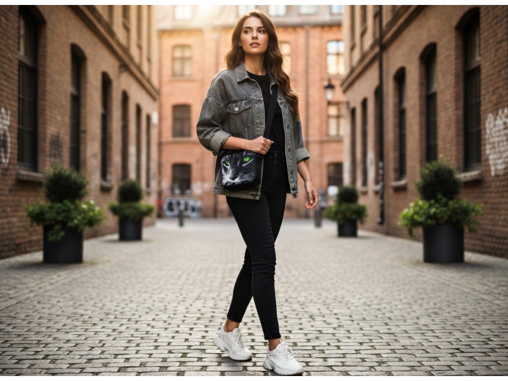 Moderní a stylová taška přes rameno s potiskem motivu kočky je praktickým a zároveň výrazným doplňkem pro každodenní nošení. Díky univerzálnímu designu je oblíbená u dětí, žen i mužů a skvěle se hodí do města, do školy, na procházky i volný čas.
