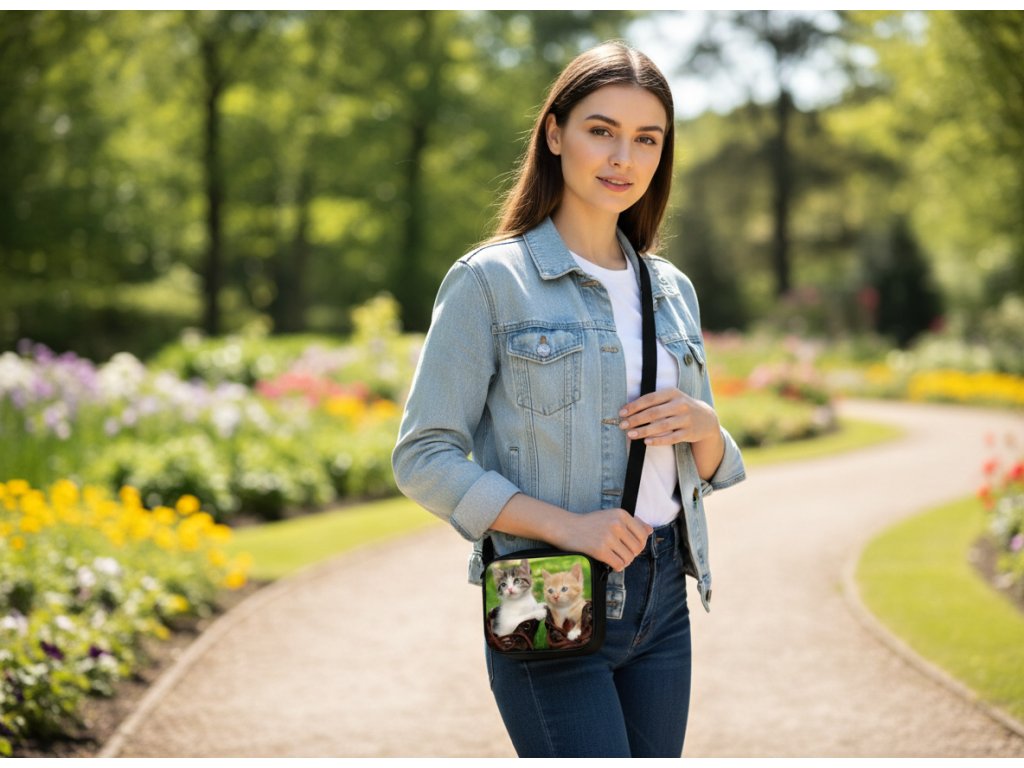 Moderní a stylová taška přes rameno s potiskem motivu kočky je praktickým a zároveň výrazným doplňkem pro každodenní nošení. Díky univerzálnímu designu je oblíbená u dětí, žen i mužů a skvěle se hodí do města, do školy, na procházky i volný čas.