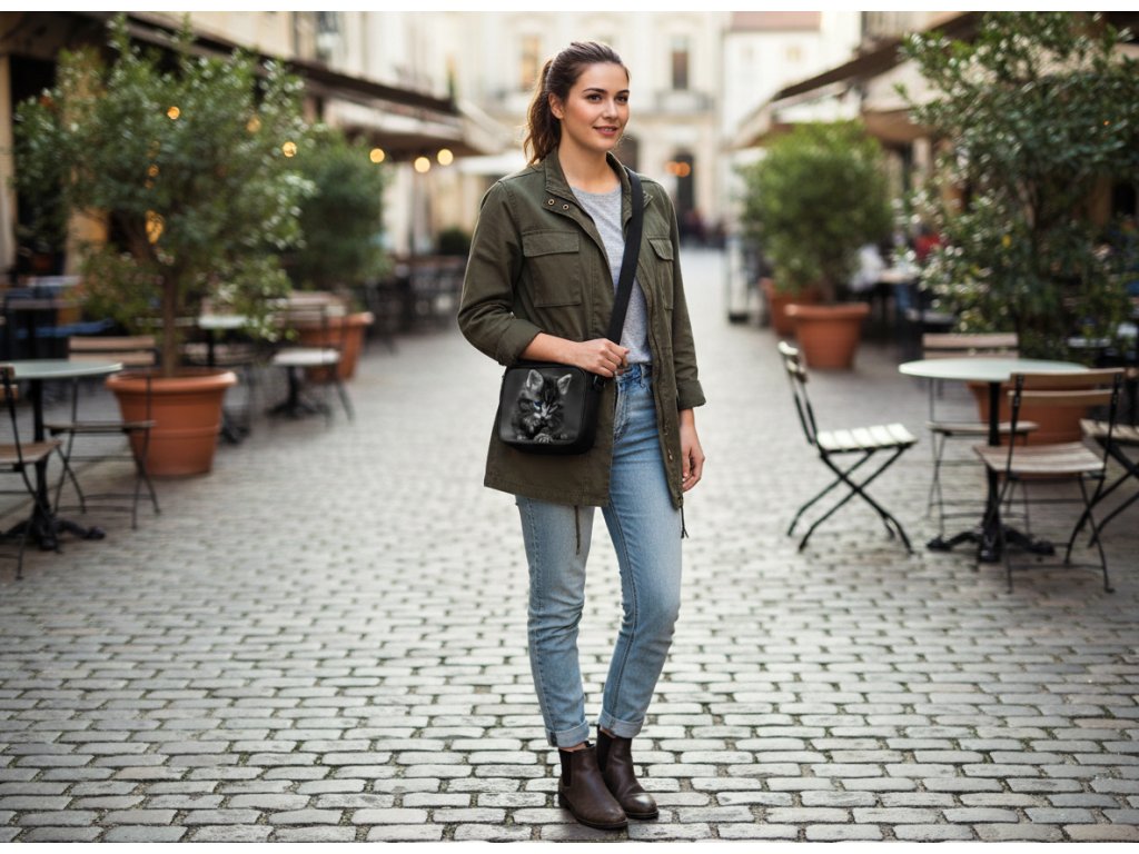 Moderní a stylová taška přes rameno s potiskem motivu kočky je praktickým a zároveň výrazným doplňkem pro každodenní nošení. Díky univerzálnímu designu je oblíbená u dětí, žen i mužů a skvěle se hodí do města, do školy, na procházky i volný čas.
