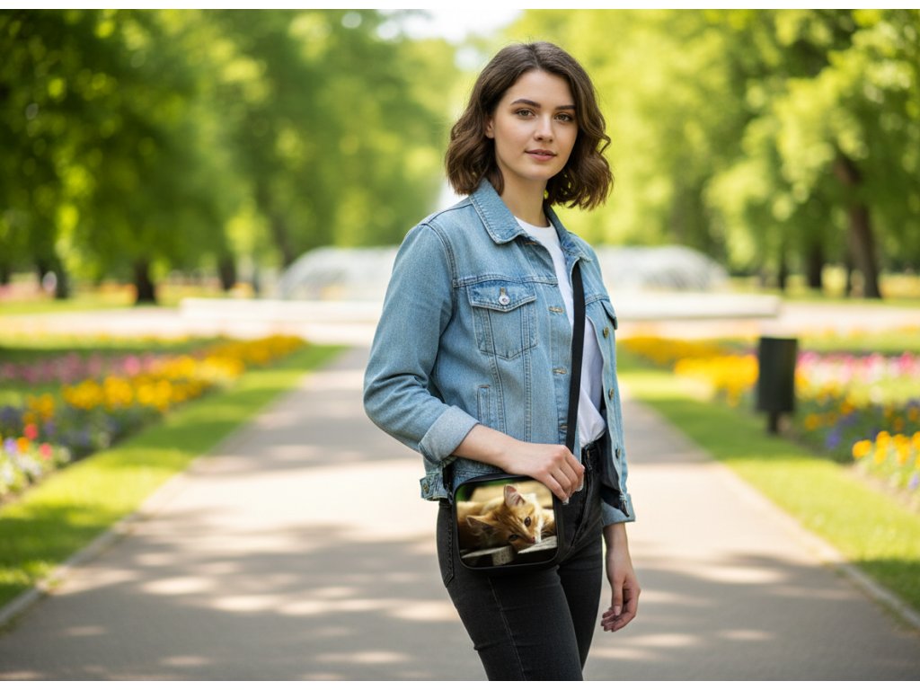 Moderní a stylová taška přes rameno s potiskem motivu kočky je praktickým a zároveň výrazným doplňkem pro každodenní nošení. Díky univerzálnímu designu je oblíbená u dětí, žen i mužů a skvěle se hodí do města, do školy, na procházky i volný čas.