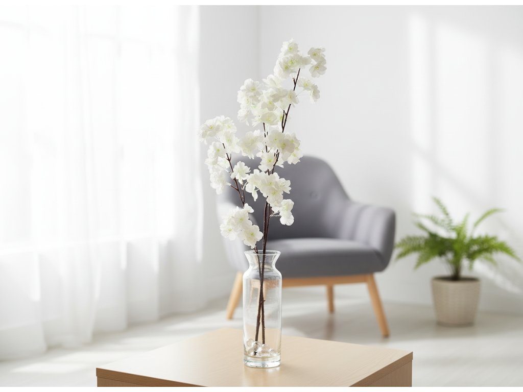 Dodejte svému interiéru lehký a svěží pocit s větvičkou JUDITA. Její jemné květy v krémové barvě přinášejí romantickou jarní atmosféru, která se krásně hodí ke klasickému i modernímu interiéru. Větvička se skvěle hodí do obývacího pokoje, ložnice nebo jídelny a dodá každému prostoru přirozené kouzlo. Můžete ji zkombinovat s jinými květinami nebo ji vystavit samostatně.