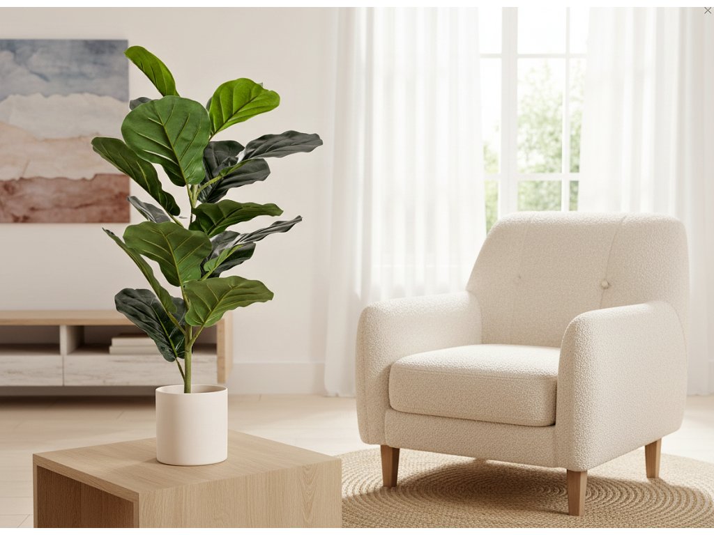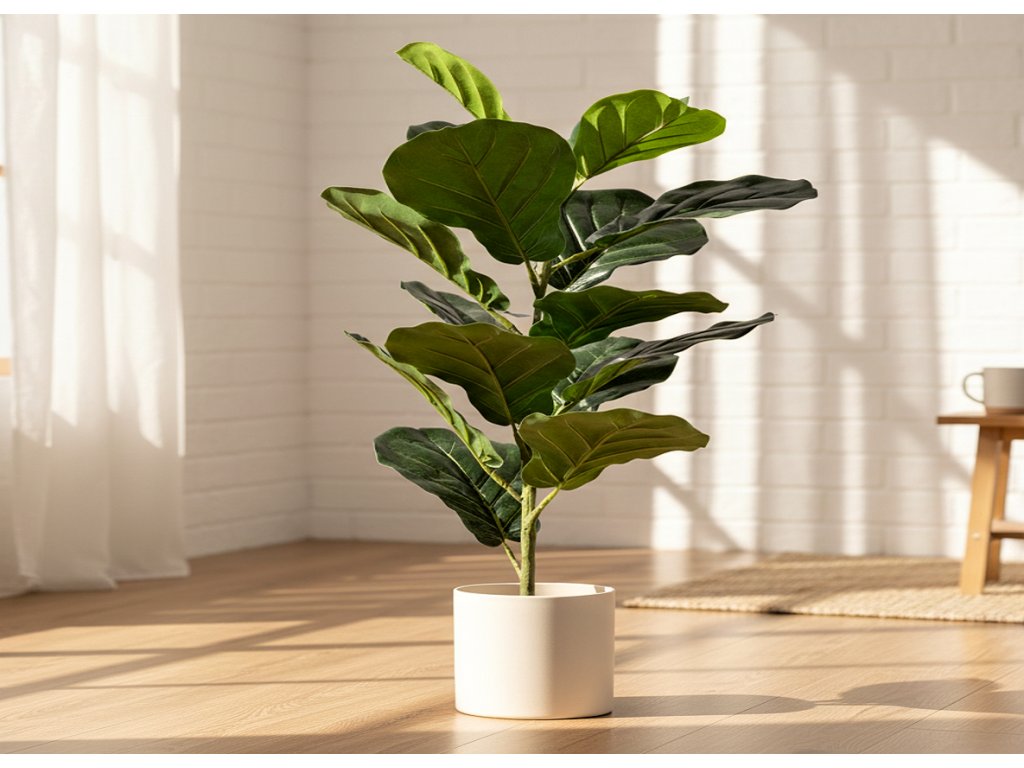Realisticky ztvárněné listy fíkovníku - Výška 58 cm, ideální k umístění na podlahu, komodu nebo stůl - Nevyžaduje zalévání ani žádnou péči - Skvělá alternativa k živým rostlinám v každém interiéru - Umělá rostlina fíkovníku 58 cm