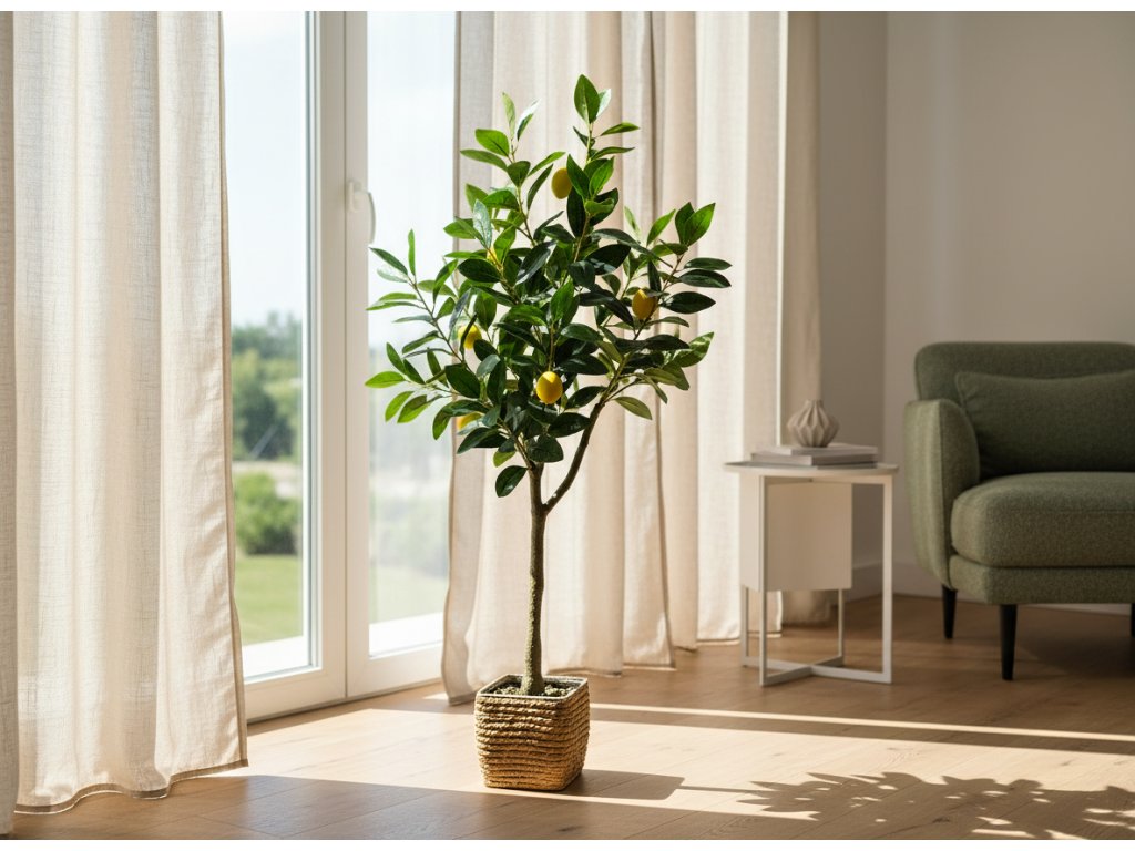 Umělá rostlina nevyžaduje zalévání ani vhodné světelné podmínky, což z ní dělá ideální volbu pro zaneprázdněné lidi nebo prostory s omezeným přístupem k přirozenému světlu. Stačí občas otřít listy, aby si zachovala estetický vzhled. Citroník je také skvělým nápadem na dárek. Díky univerzálnímu designu a nadčasové formě se stane vkusným doplňkem každého interiéru a potěší oko po celý rok, bez ohledu na roční období.