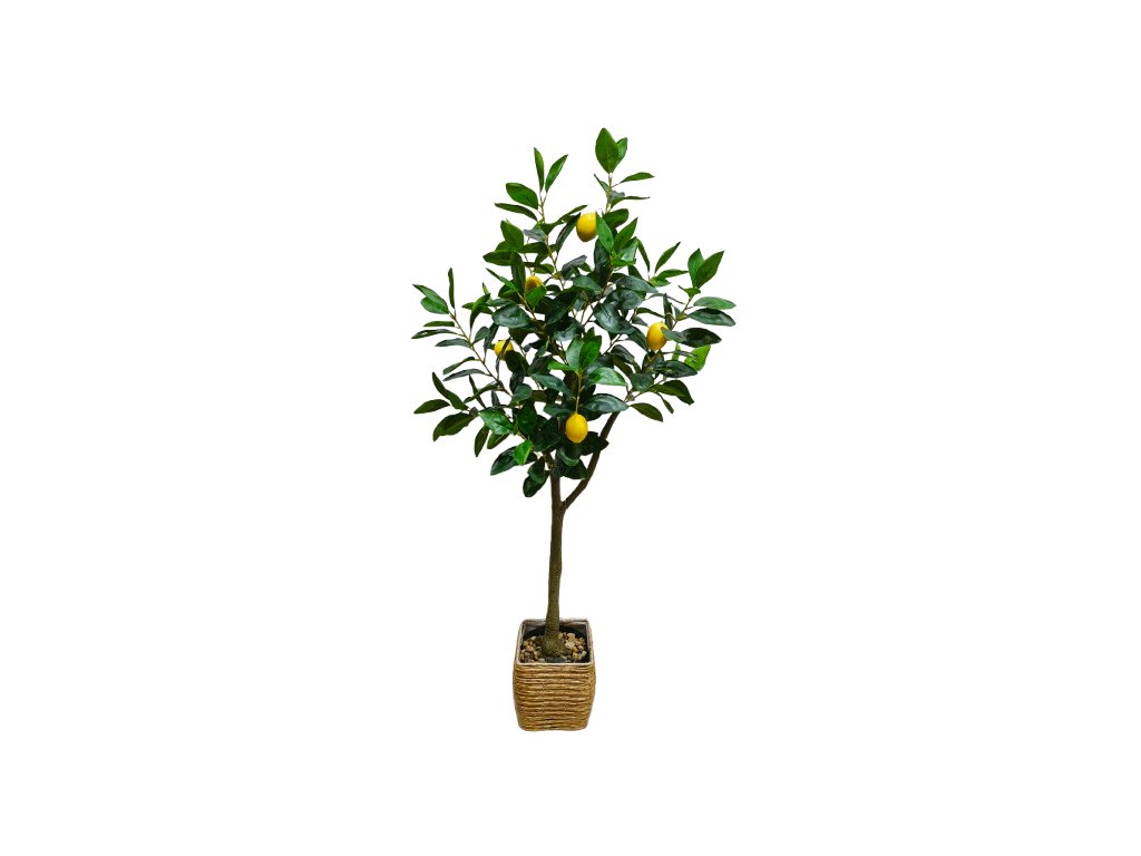 Umělý citroník s realistickým vzhledem. - Výška 115 cm je ideální do obývacího pokoje, kanceláře nebo komerčních prostor. - Dekorativní citrony a listy věrně napodobují přírodní rostlinu. - Není nutné zalévat ani zajišťovat přístup slunečního světla.