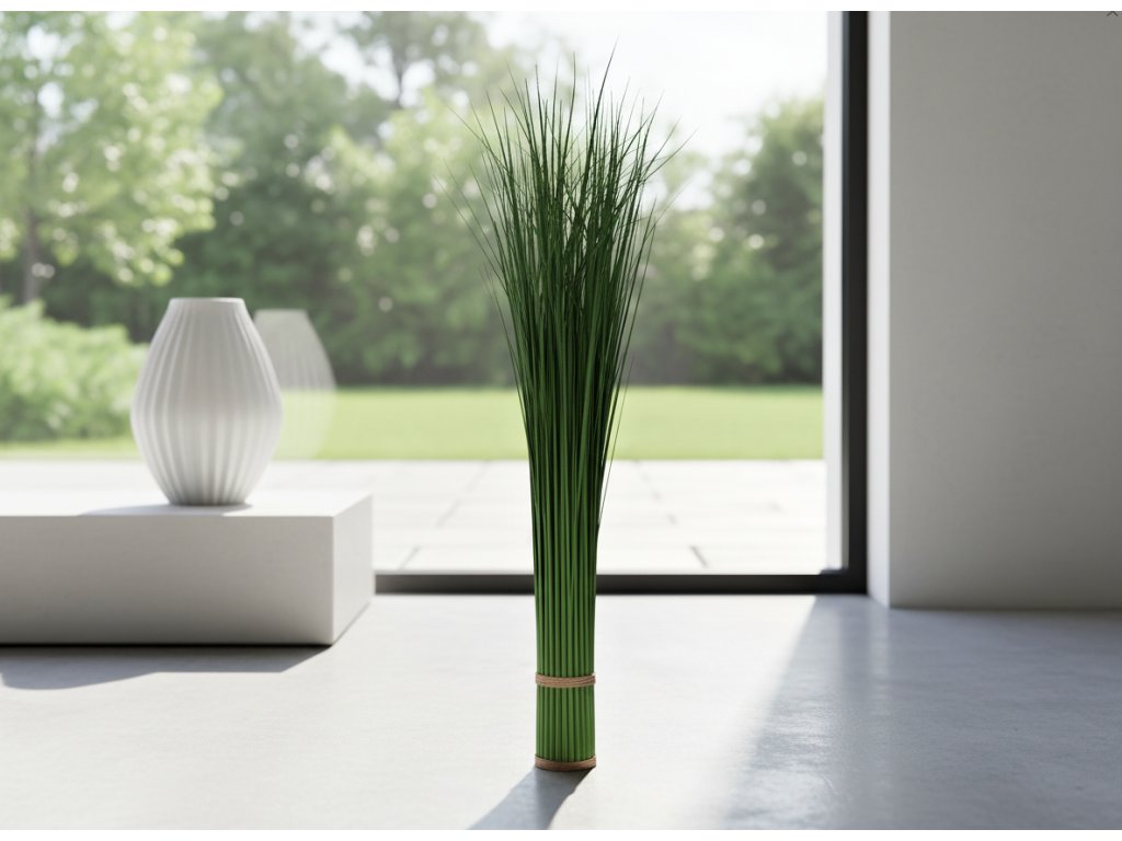 Umělá tráva, stejně jako většina umělých rostlin, je ideální volbou pro lidi, kteří chtějí do svého interiéru vnést živou zeleň, ale nemají duši zahradníka. Travina nevyžaduje zalévání ani údržbu. Jedná se o hrst dlouhých stébel, která budou dobře vypadat jako doplněk jiných kompozic nebo jednoduše ve vysoké váze. Dosahuje délky až 120 cm.