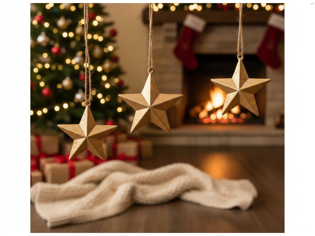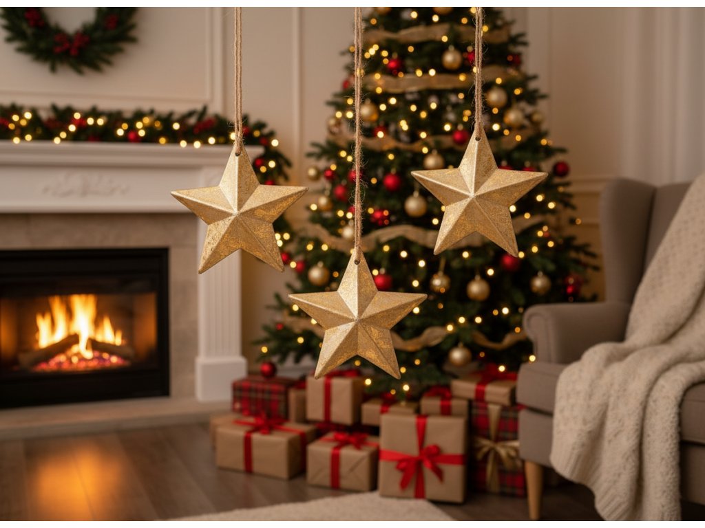 Přívěsky ve tvaru zlatých hvězd jsou stylovou dekorací, která dodá vašemu interiéru zvláštní sváteční lesk. Díky svému jednoduchému, ale elegantnímu tvaru se hodí do mnoha interiérů – od klasických po moderní. Díky zlatému povrchu krásně odrážejí světlo a vytvářejí tak teplou a útulnou atmosféru.